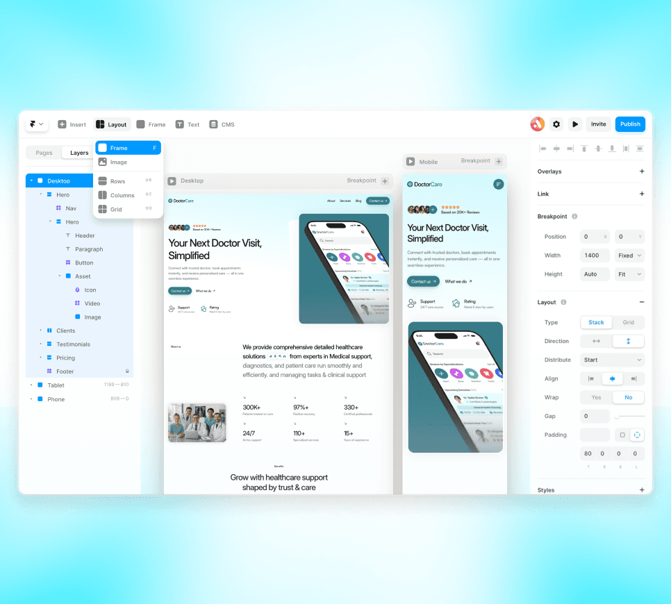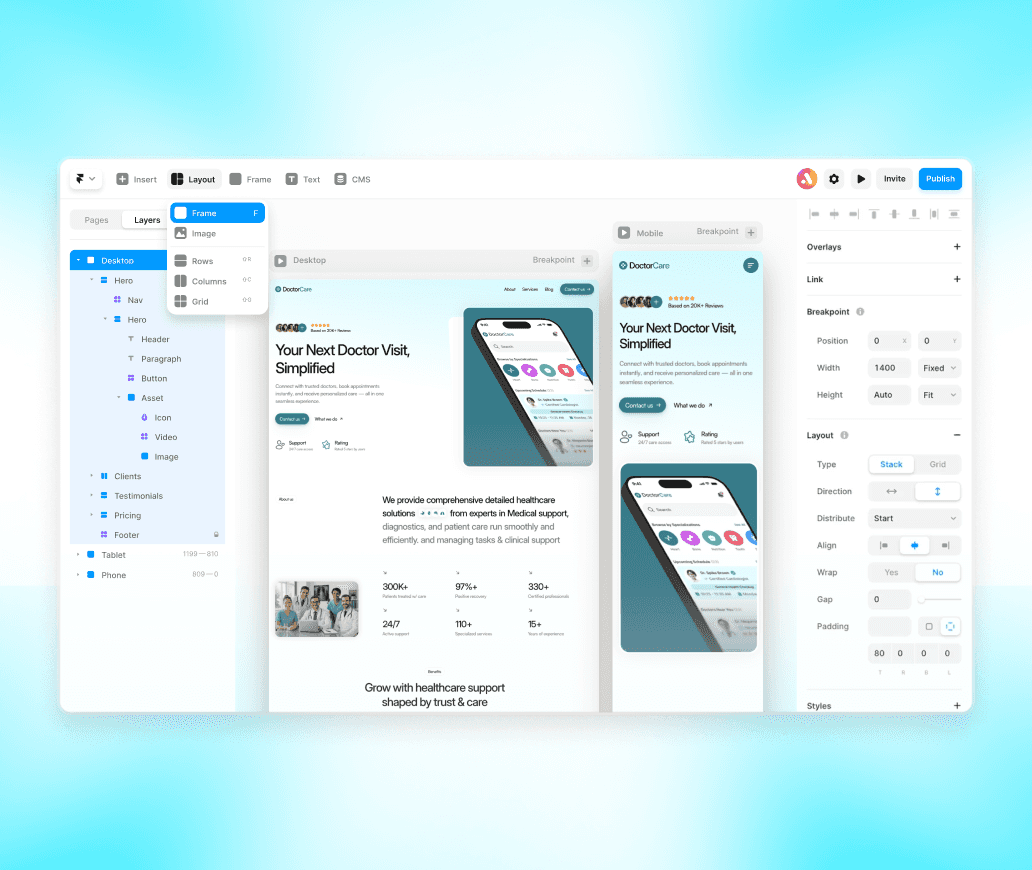 Get high-quality Figma designs and Framer-developed websites, ready to launch.