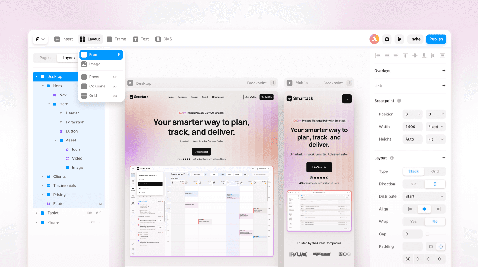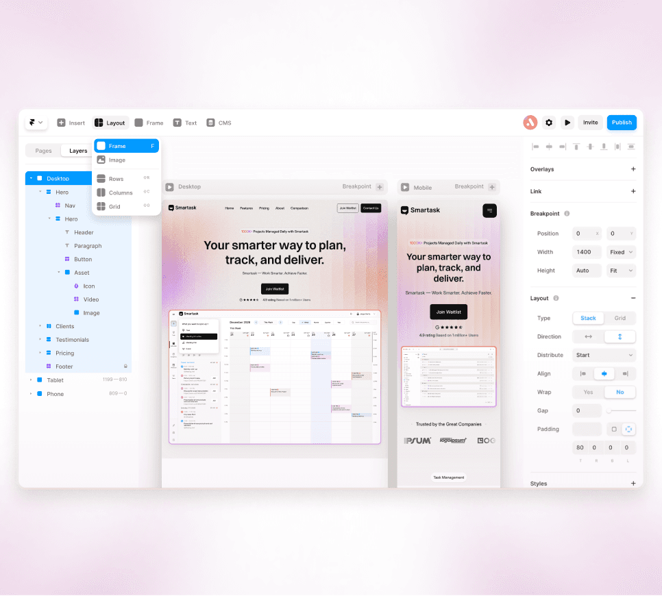 SmartAsk is a modern AI assistant built to deliver instant answers, automate queries, and enhance productivity with intuitive interactions, designed in Figma and developed in Framer for speed and scalability.