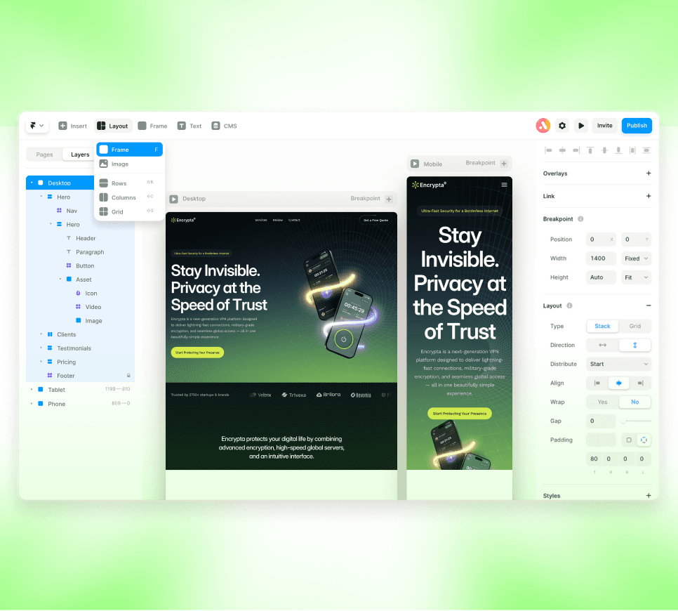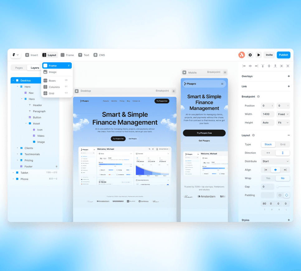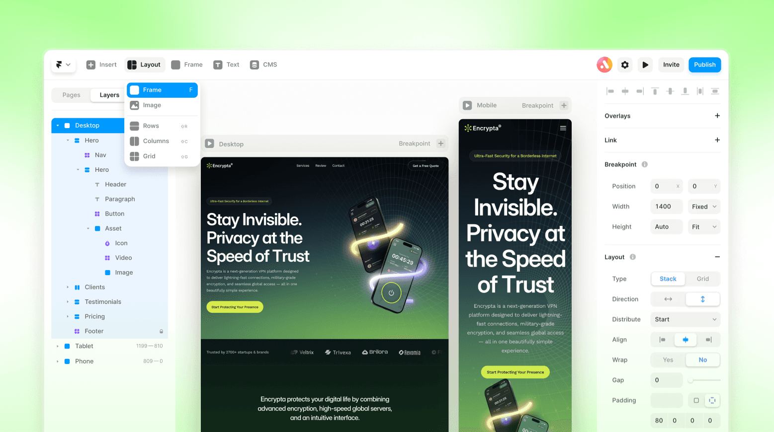 Get high-quality Figma designs and Framer-developed websites, ready to launch.
