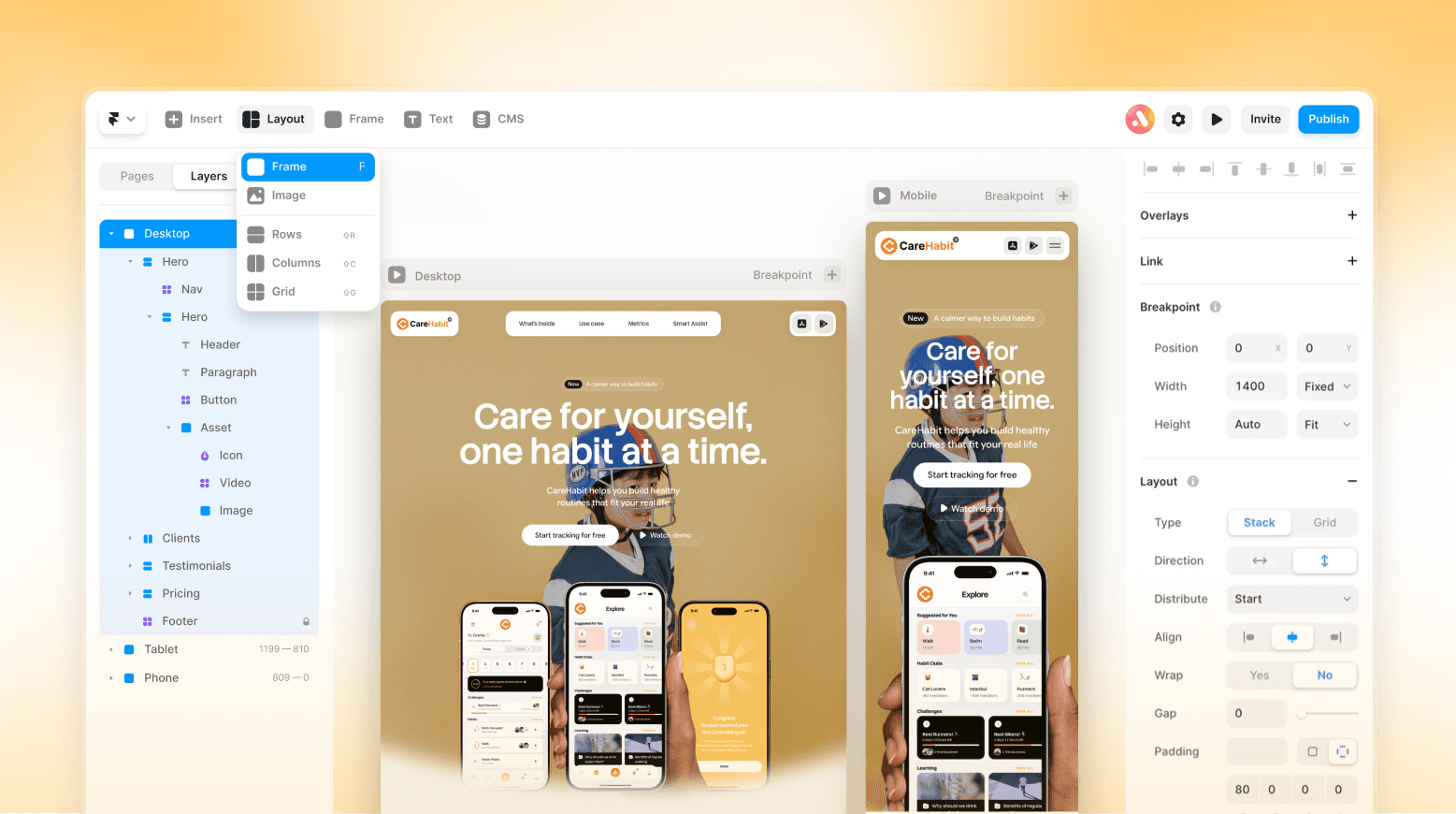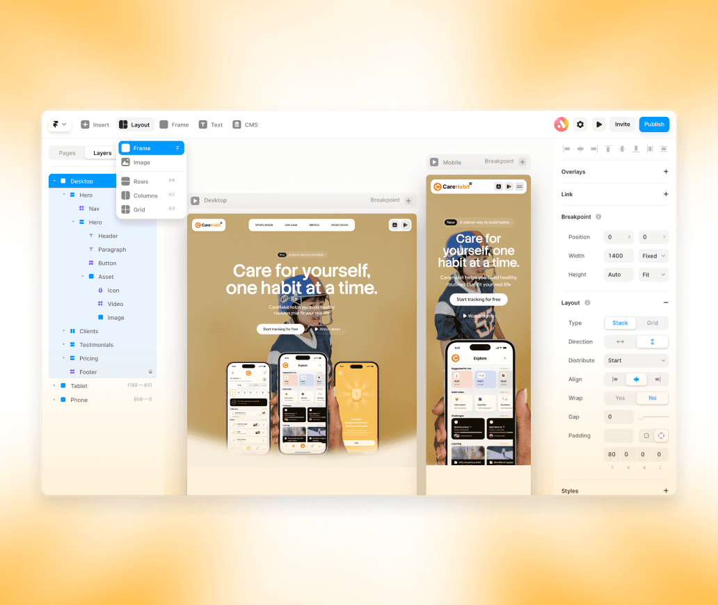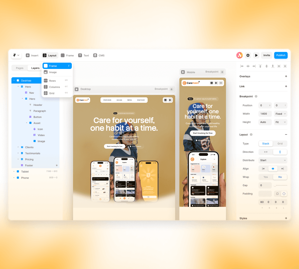CareHabit is a healthcare experience crafted to deliver clarity, trust, and ease through clean interfaces, structured service flows, and patient-first interactions, designed in Figma and developed in Framer.